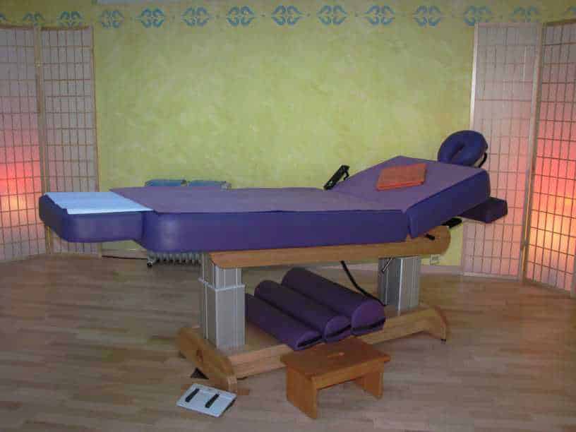 Für die manuelle Arbeit steht eine elektrisch verstellbare Oakworks-Behandlungsliege zur Verfügung. Bewährte mechanische Qualität, durchdachte Detaillösungen und auch in ästhetischer Hinsicht gelungene Konstruktionen zeichnen die Liegen dieses amerikanischen Herstellers aus.