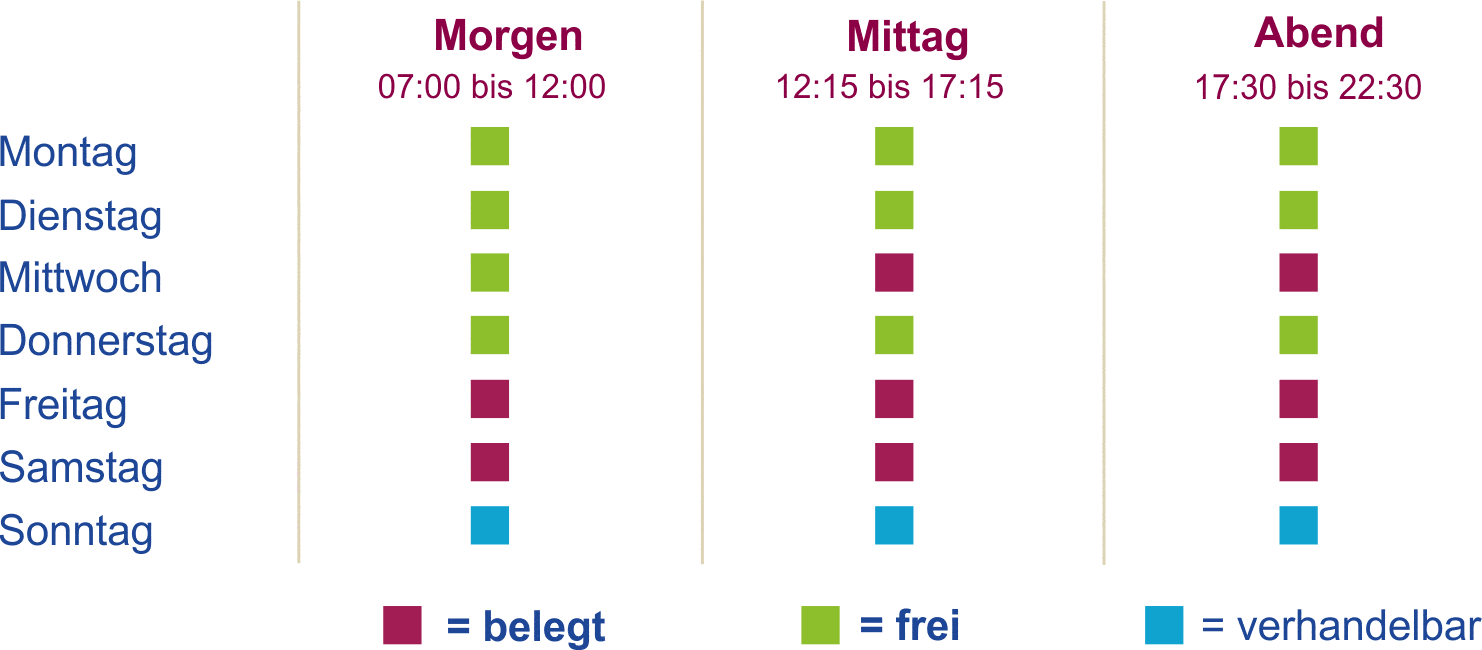 Aktuell sind noch folgende Zeiten zu vermieten: